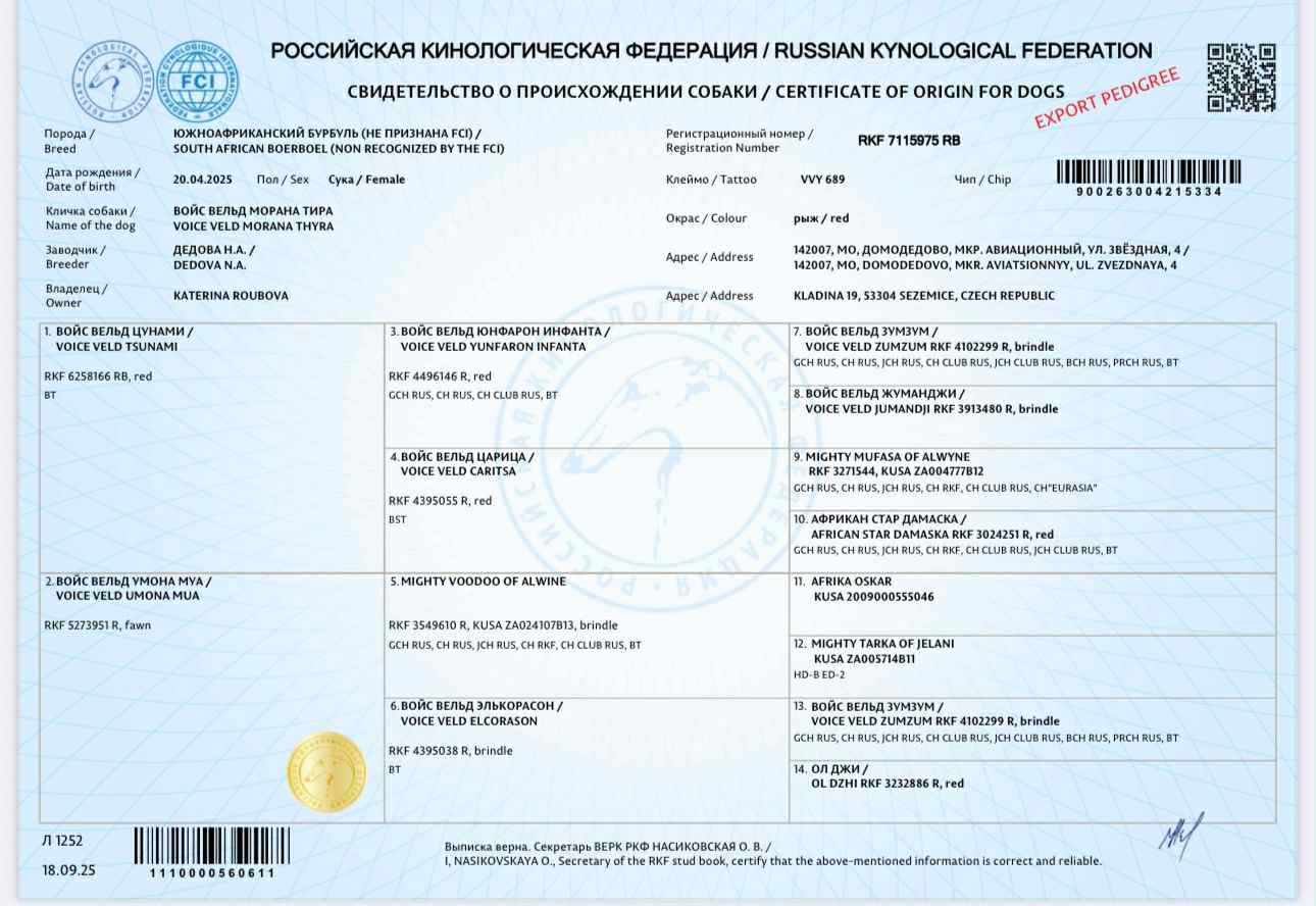 Registrovaný chovný jedinec: